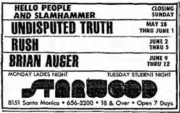 "Over the coming few months across the States we'd open for Blue Öyster Cult, Iron Butterfly, David Essex, Frank Zappa and the Mothers, REO Speedwagon, ELO, Kansas, Styx, Lynyrd Skynyrd, Mott the Hoople, Ted Nugent - and KISS for the last time." - Geddy Lee, My Effin' Life